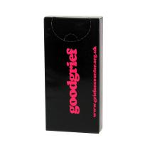 2 executions: Model A: Box size 105 x 60 x 25 mm. or Model B size 125 x 60 x 25mm. Cardboard 265 gr/m2. With glossy or matt varnish.