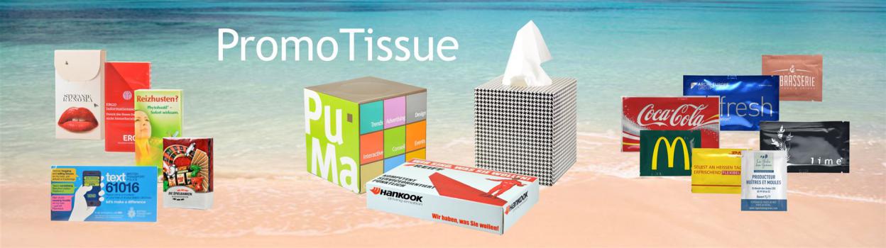 We produce printed promotional advertising tissue packs with your corporate logo, customized and decorated. Your personalised pocket tissues can be used as a corporate gift, marketing promotion, or printed with a promo message and it is available on sale at special wholesale prices. At PromoTissue we provide custom printed promotional pocket tissues to your specifications.